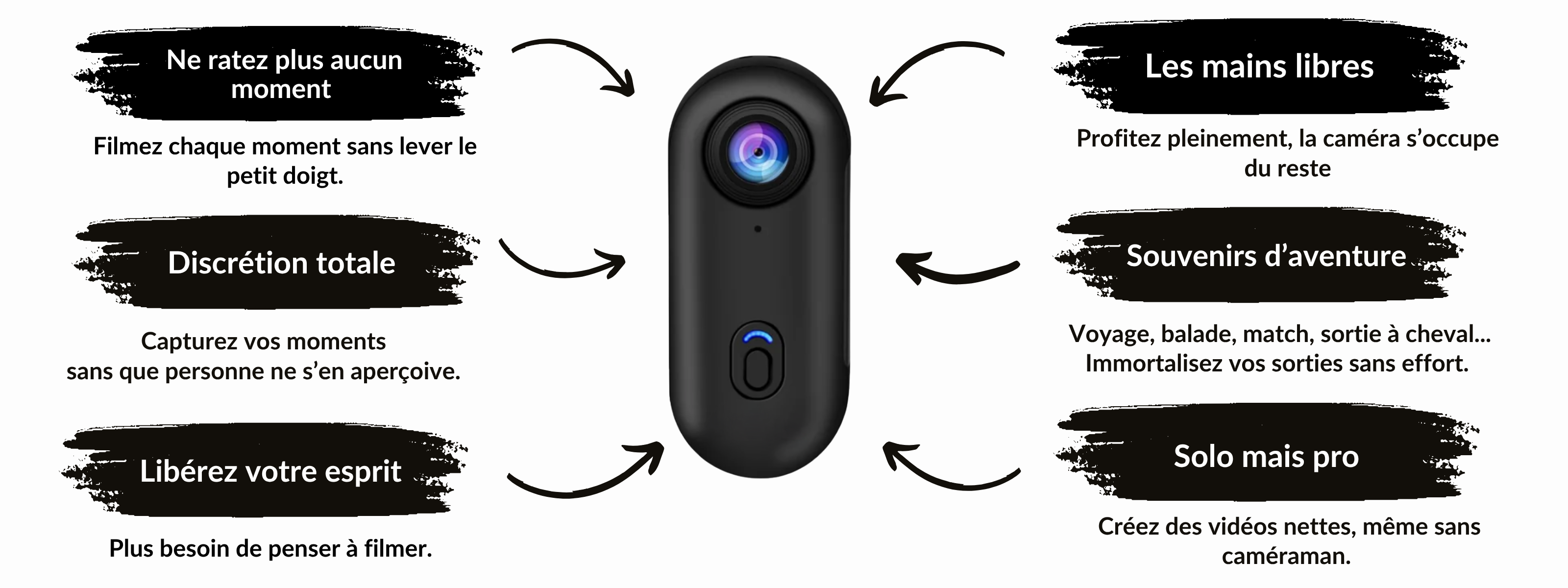 Équipée d’un enregistrement audio clair, d’un ultra grand angle et du contrôle vocal, elle t’offre une expérience fluide, immersive, et sans effort.